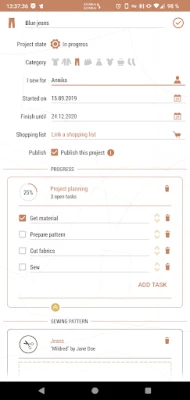 So what good are all those beautiful fabrics, haberdashery, and patterns if you don't combine them into a piece? With the sewing project management you can organize your current, future and already completed sewing projects.