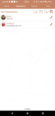 Be honest, how many times have you been stuck in the fabric store wondering if you should buy a fabric or haberdashery, or if you have enough material at home yet? Stop that now and start managing your materials and patterns conveniently in the Stitchies app.