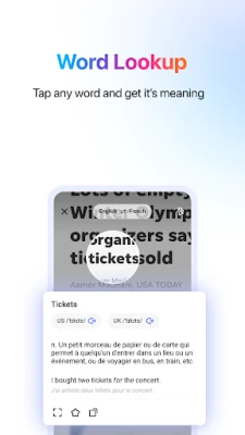 Click the floating ball and translate any language across the app easily. The best choice for education and language learning.